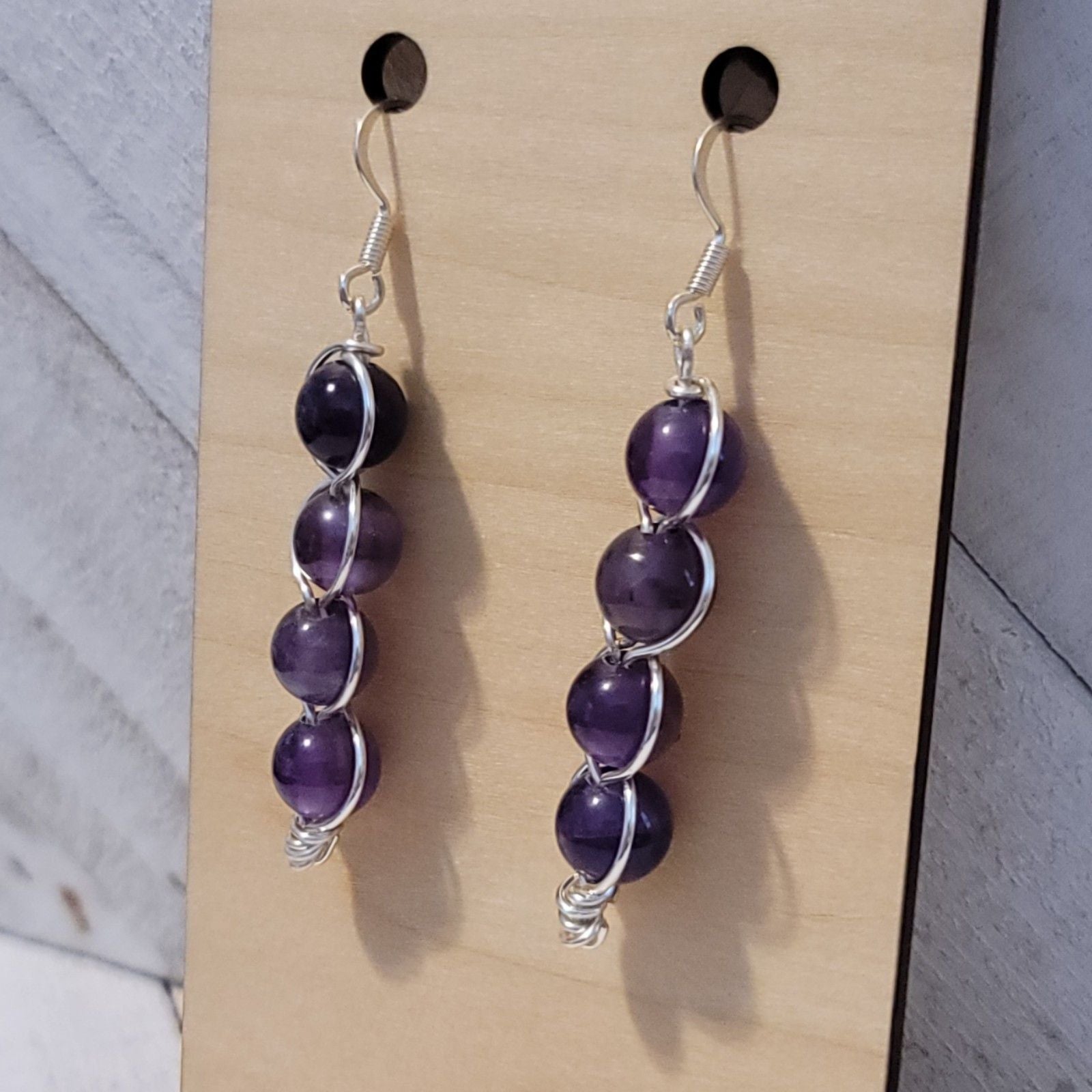 Handmade Amethyst Bead Earrings – Silver Wire Wrapped Dangle Jewelry