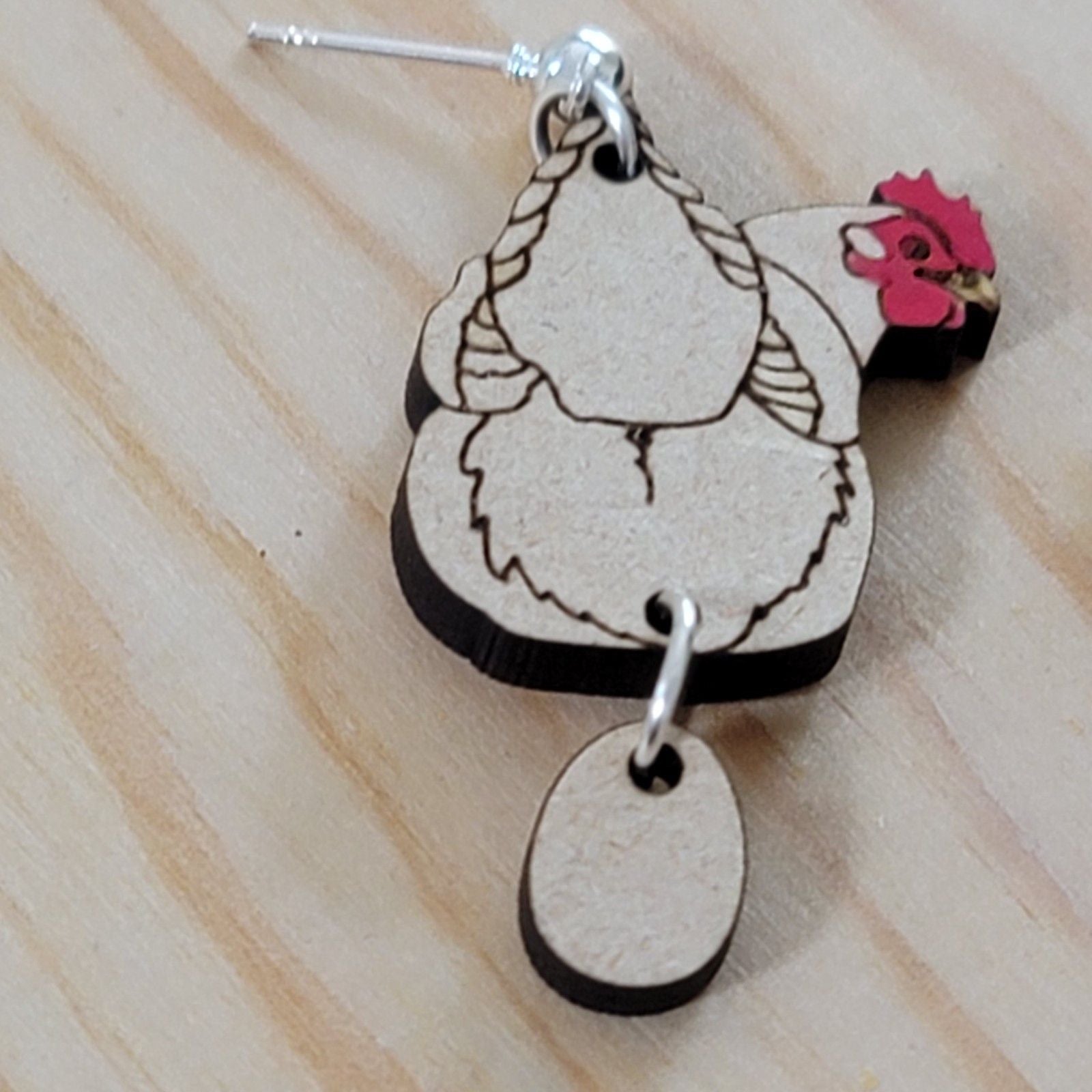 Handmade Chicken Butt Hen & Egg Dangle Earrings – Farmhouse Humor Gift