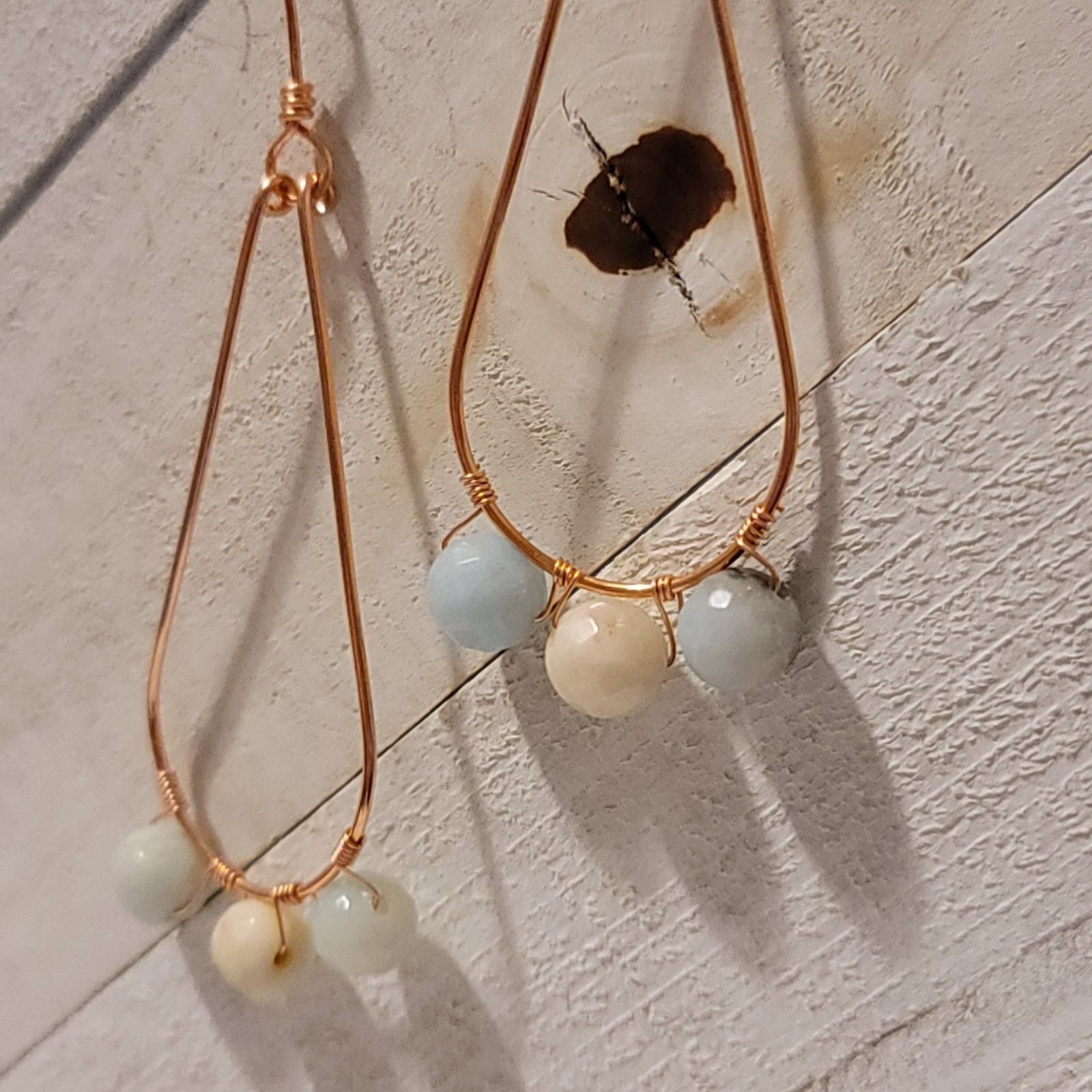 Materials: Amazonite gemstone beads, copper wire, copper ear hooks