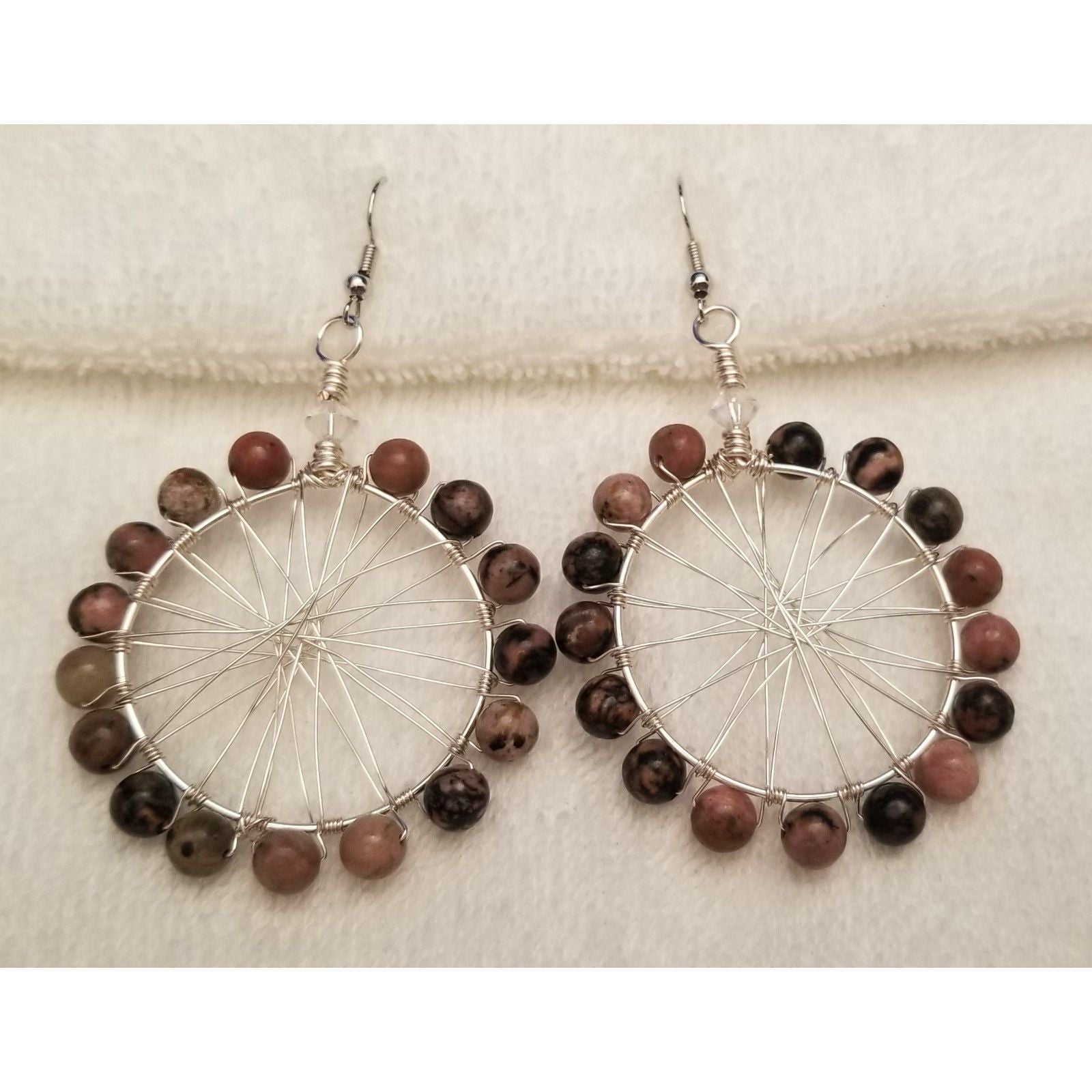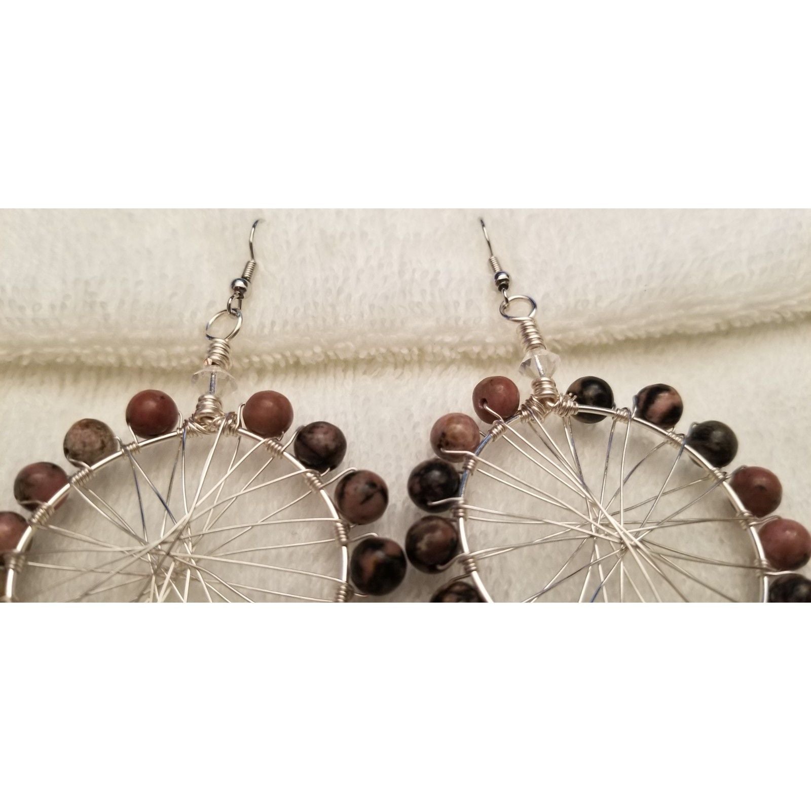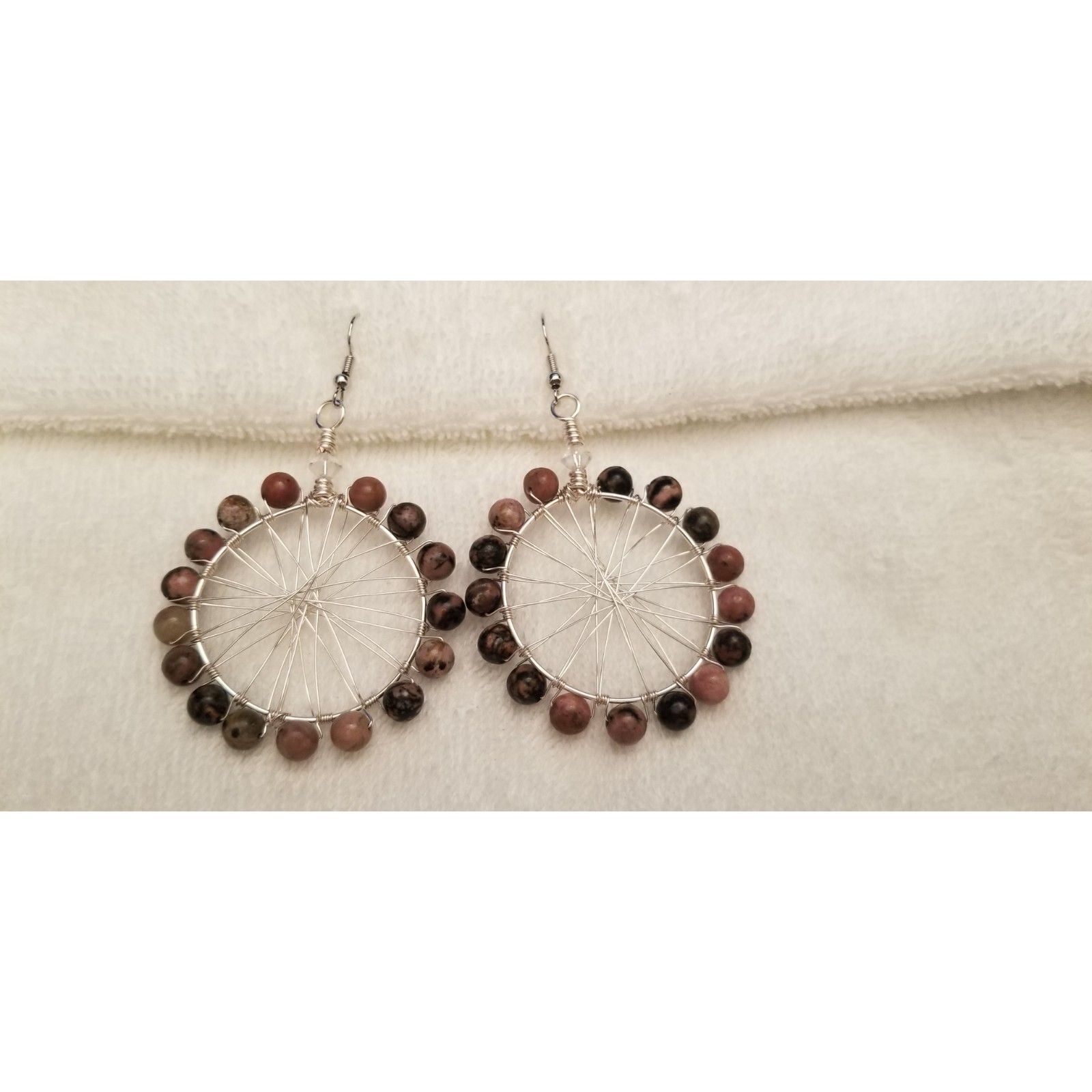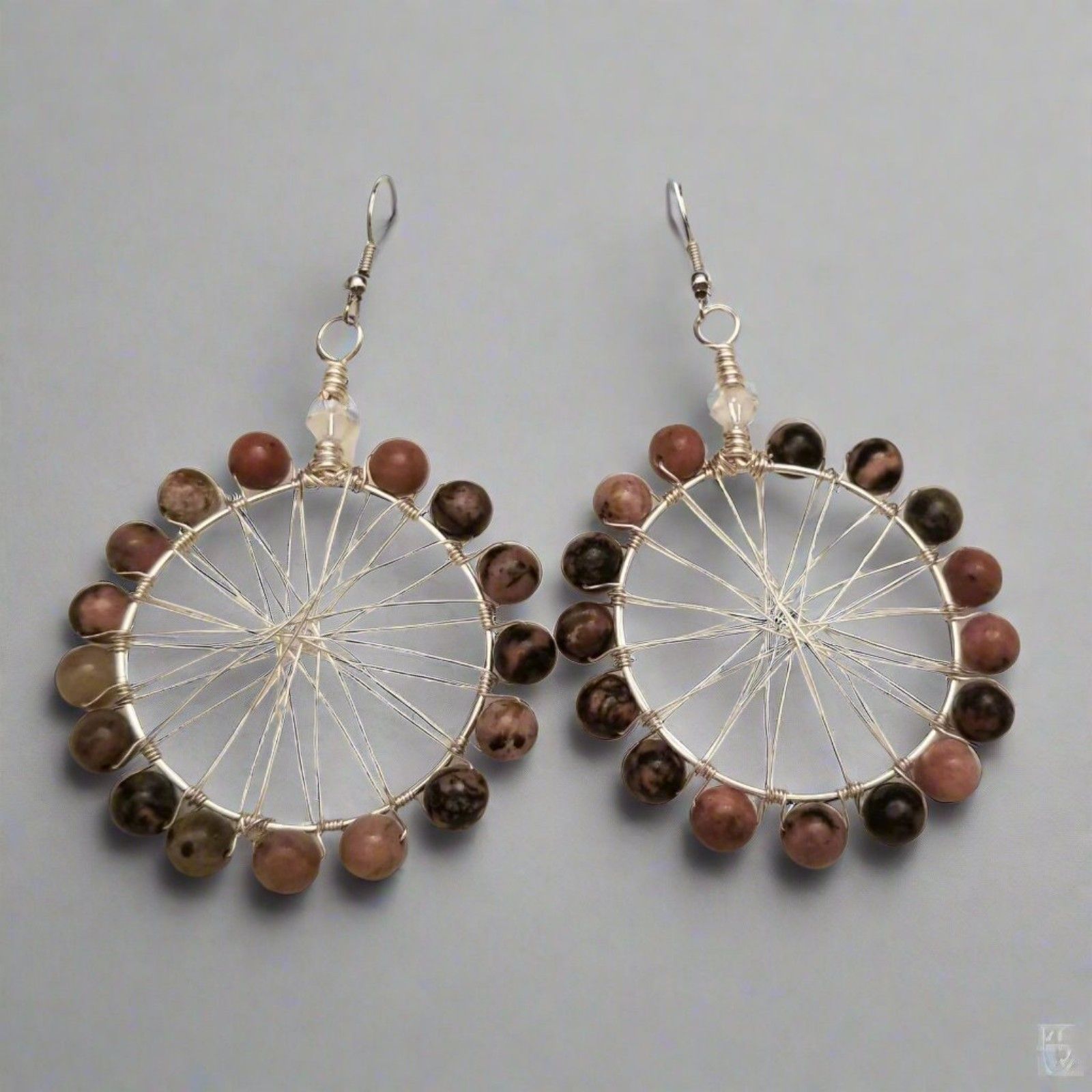 These handmade earrings feature beautiful jasper beads carved in round shapes and linked in around design. The jasper beads display earthy tones with unique patterns, making each pair truly one-of-a-kind. Lightweight yet eye-catching, they’re perfect for adding a touch of boho-chic charm to your look.
