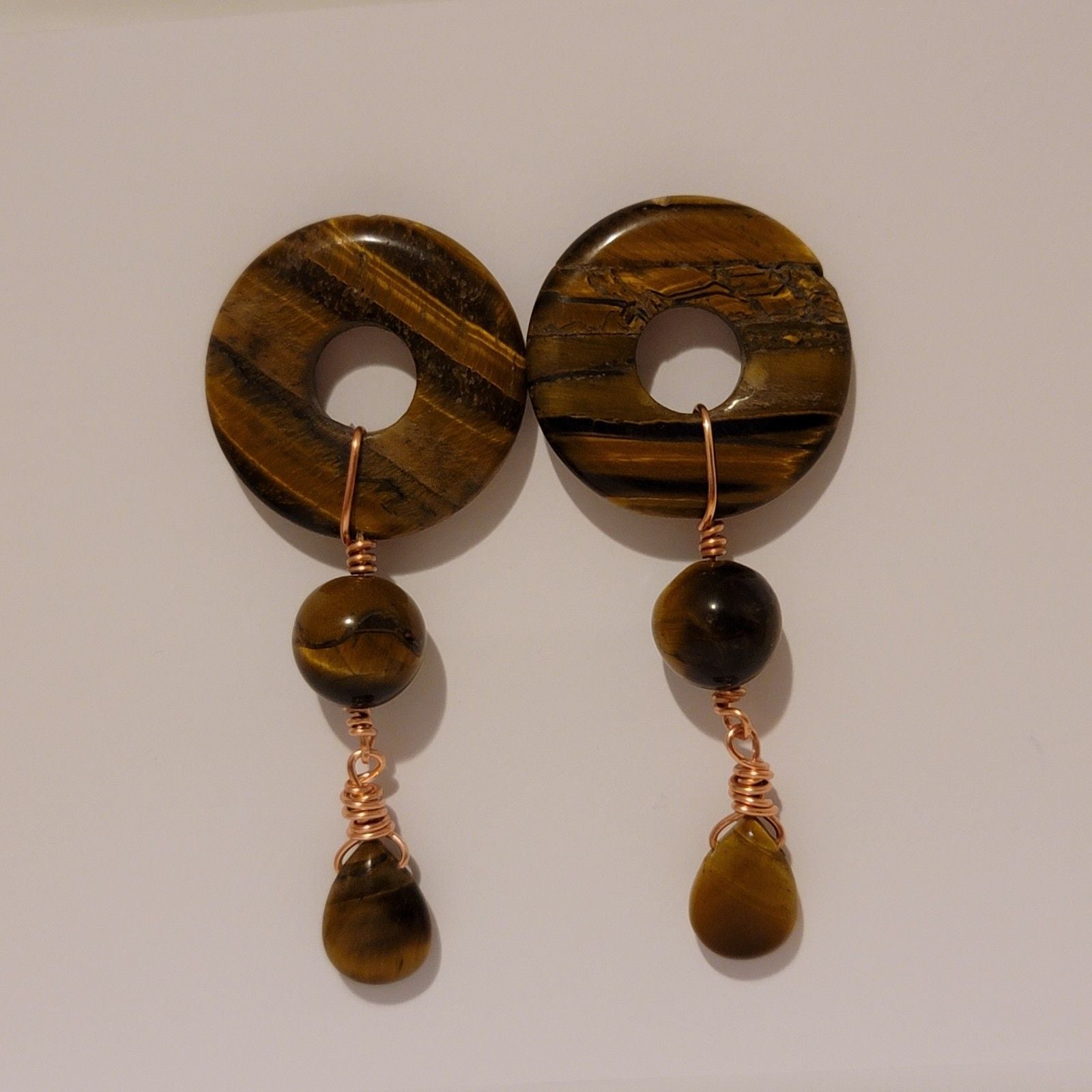 Handmade Tiger’s Eye Donut Dangle Copper Earrings