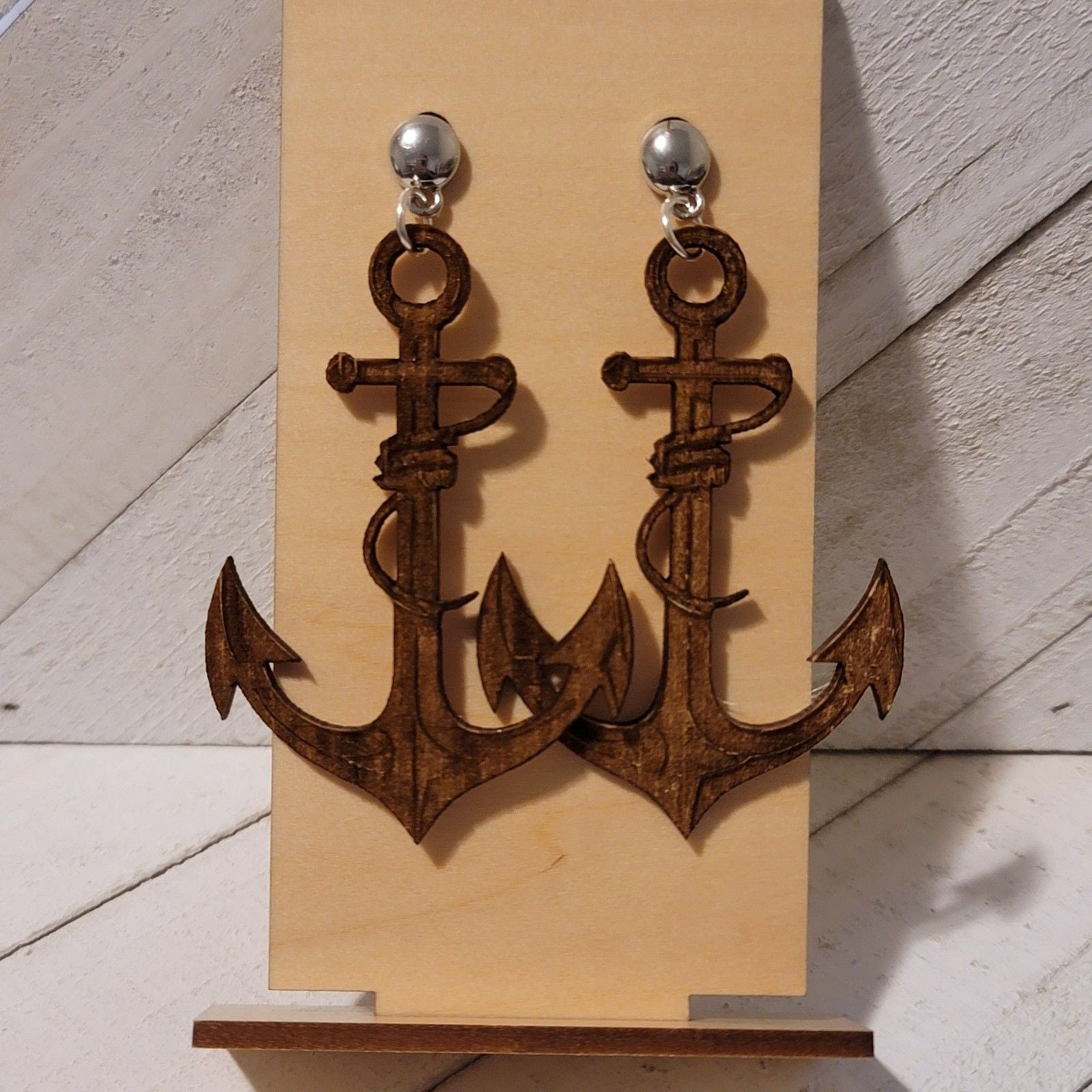 These large laser-cut anchor earrings make the perfect bold nautical statement. Lightweight and eye-catching, each earring features a finely detailed anchor design paired with a shimmering bead accent for added sparkle.